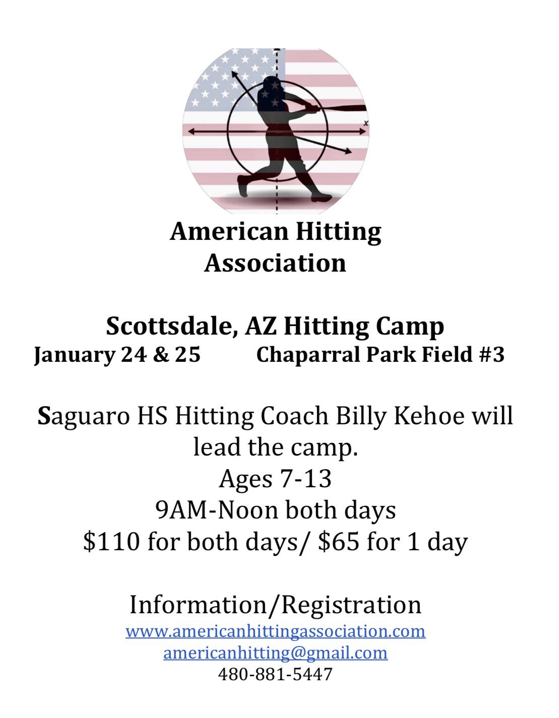 The American Hitting Association is holding a 2 day hitting camp covering the swing from head to toe and from start to finish!